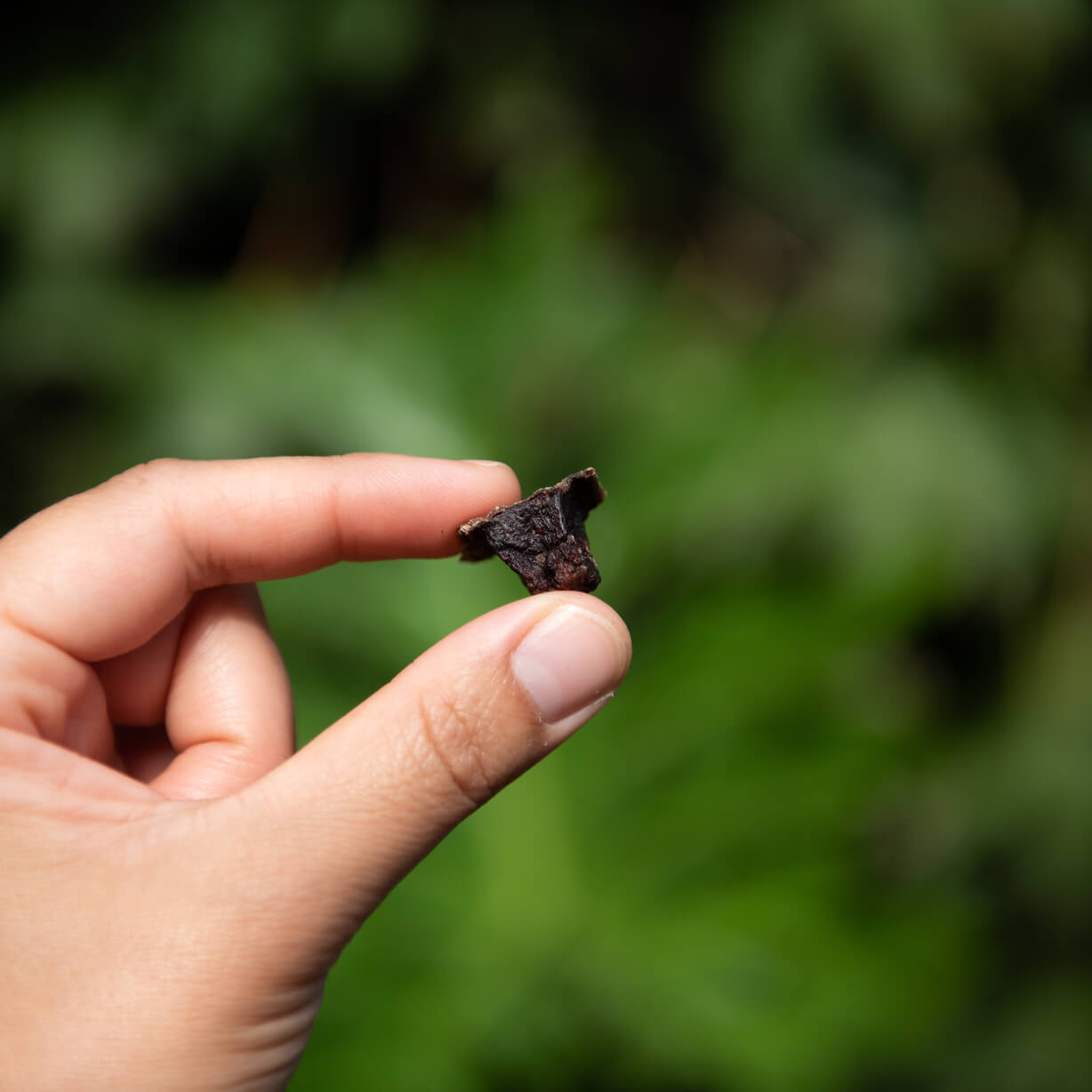 食べやすいように一度ミンチしてから成型、温風乾燥しています。
